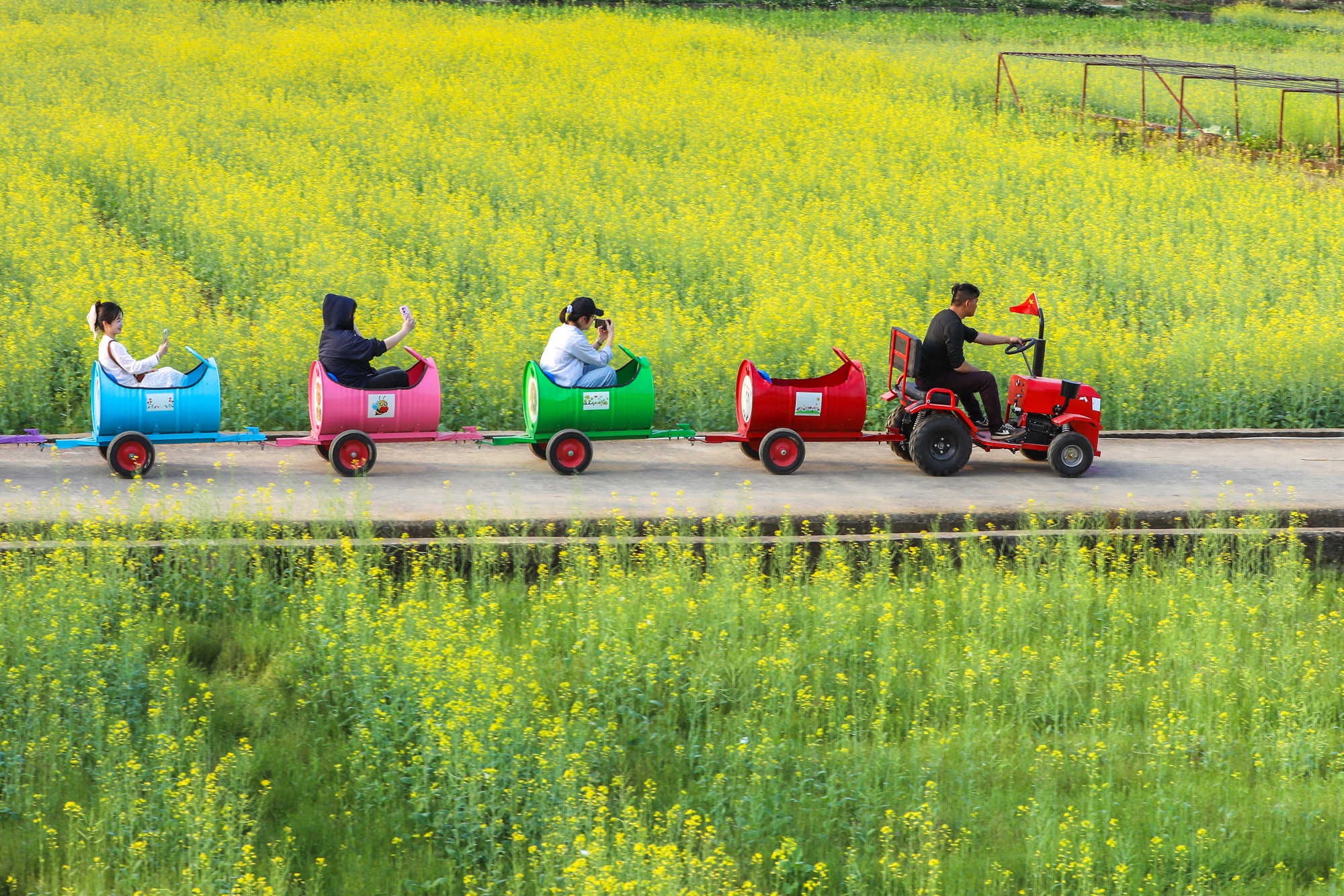惊蛰时节,油菜花开。在广西壮族自治区梧州市龙圩区的稻渔综合种养示范基地,成片的油菜花竞相绽放,吸引不少游客观赏。(广西壮族自治区梧州市纪委监委供 林志清 摄)